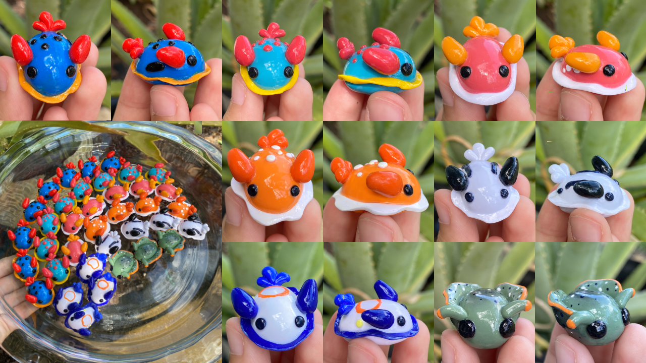 I made a bunch of colorful sea slug babies! they're so petite and round they remind me of jellybeans.