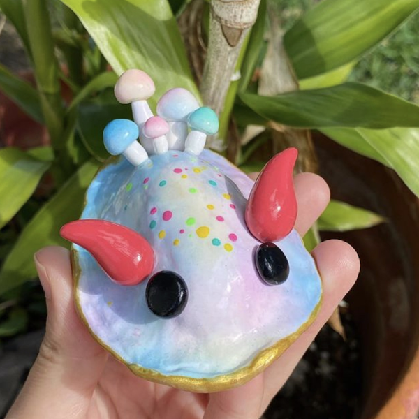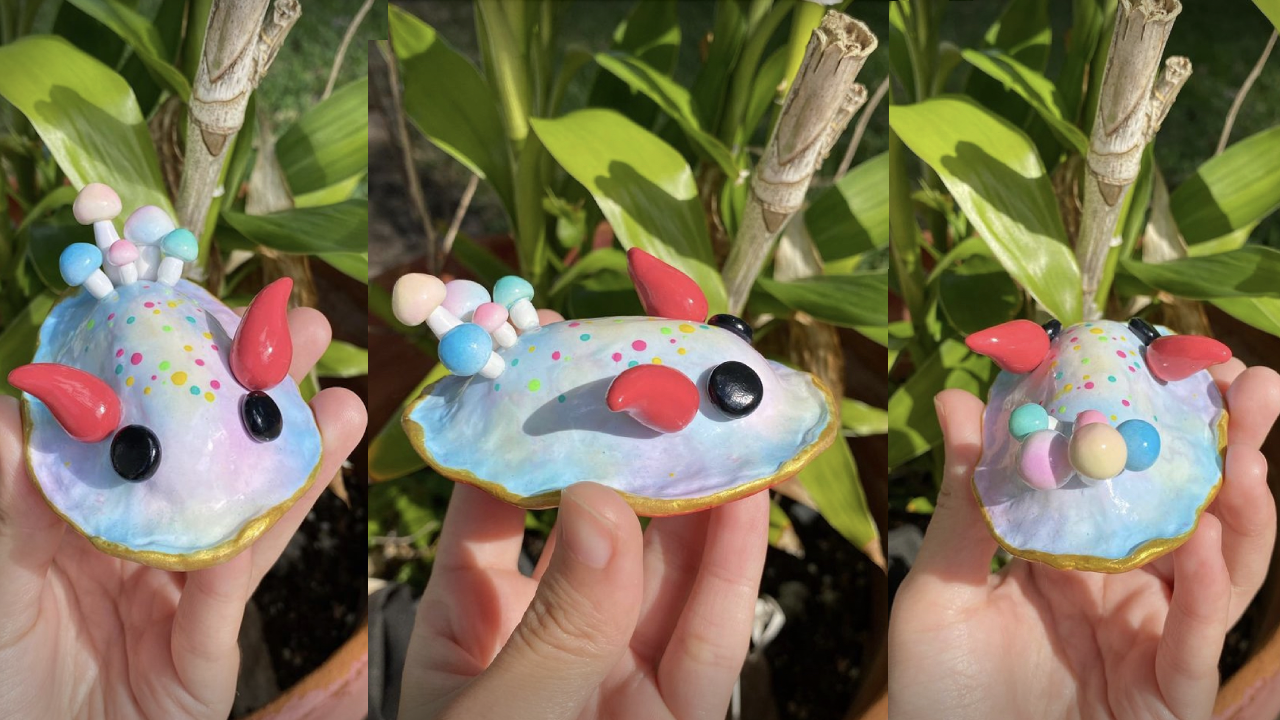 Hand-sculpted with polymer clay and varnished with water based polyurethane for its shine.
