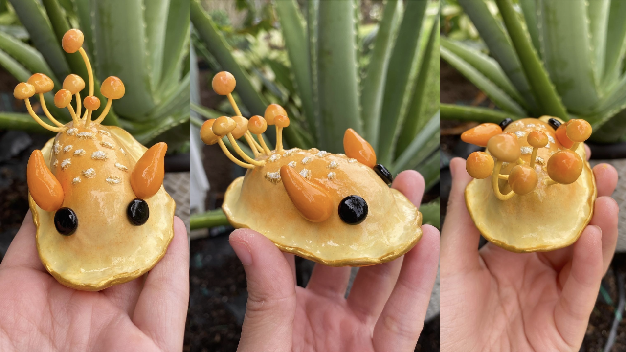 I made a yellow mushroom sea slug with many long mushrooms on its back for an imposing air.